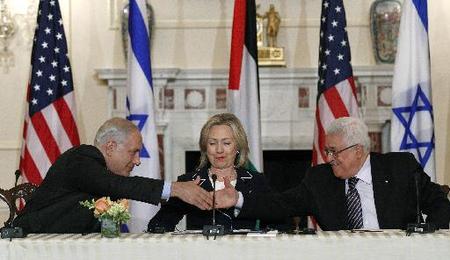 Η υπουργός Εξωτερικών των Ηνωμένων Πολιτειών Χίλαρι Κλίντον καλωσόρισε τον ισραηλινό πρωθυπουργό Μπενιαμίν Νετανιάχου και τον παλαιστίνιο πρόεδρο Μαχμούτ Αμπάς στο Στέιτ Ντιπάρτμεντ για την έναρξη των συνομιλιών.