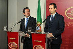 Στην συνάντησή του, εξάλλου, με τον σκοπιανό υπουργό Εξωτερικών, Αντόνιο Μιλοσόσκι, συζητήθηκαν θέματα σε τομείς κοινού ενδιαφέροντος, όπως ανακοινώθηκε, εμβάθυνση του πολιτικού διαλόγου, βελτίωση της οικονομικής συνεργασίας καθώς και η υποστήριξη της Πορτογαλίας στην έναρξη των διαπραγματεύσεων της πΓΔΜ με την Ευρωπαϊκή Ένωση.
