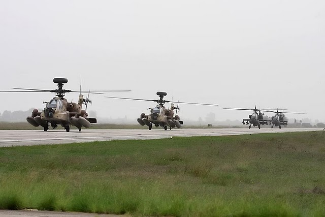 Ισραηλινά και Ελληνικά Apache τροχοδρομούν για απογείωση. (Εσμίας ΕΕΛΜΗ Νικόλαος Ζήρος). |