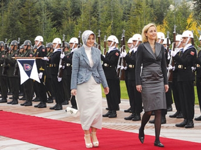 Εν τω μεταξύ μόλις χθες η σύζυγος του Τούρκου προέδρου Αμπντουλάχ Γκιούλ περπάτησε στο κόκκινο χαλί του προεδρικού μεγάρου φορώντας μαντίλα, ενώ ο στρατός τη χαιρέτισε, πράγμα πρωτοφανές για τη γείτονα χώρα.
