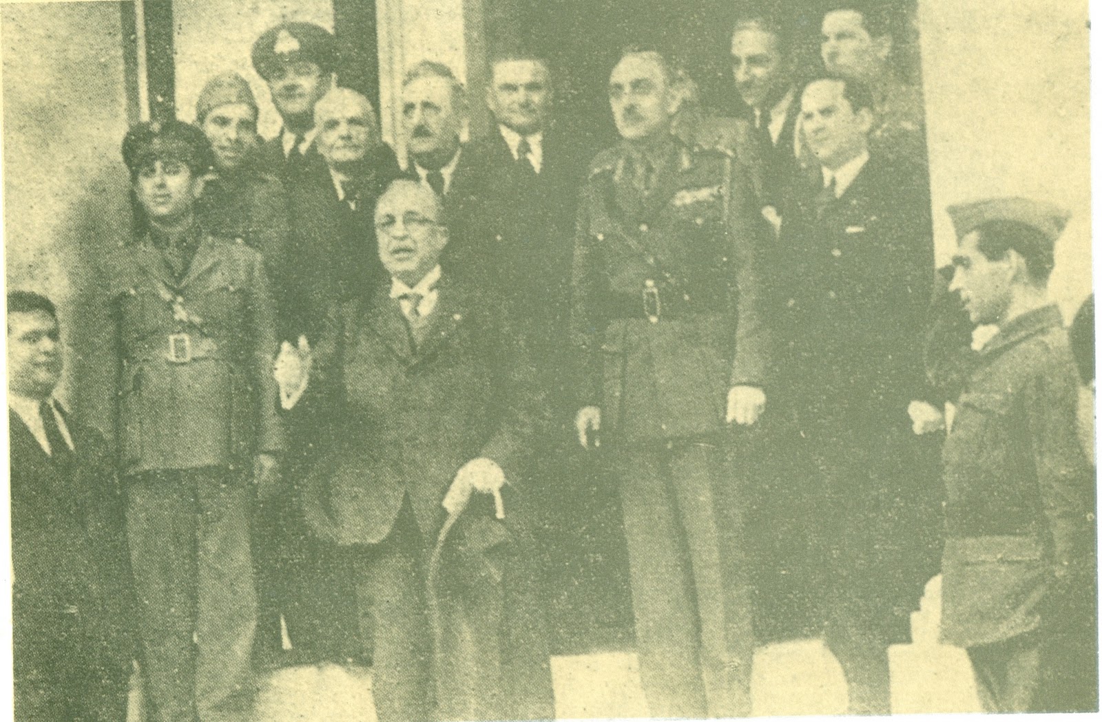 Ο Ιωάννης Μεταξάς αναγγέλει στο πλήθος την απελευθέρωση της Κορυτσάς. Δίπλα του ο Αρχιστράτηγος Παπάγος |