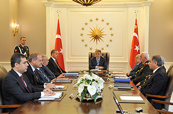 Στη συνεδρίαση του Συμβουλίου Εθνικής Ασφάλειας συμμετείχαν , ο πρόεδρος της Δημοκρατίας Αμντουλάχ Γκιούλ, ο πρωθυπουργός Ρετζέπ Ταγίπ Ερντογάν, ο υπουργός Αμυνας Βετζντί Γκιονούλ,΄ο Υπουργός Εξωτερικών Αχμέτ Νταβούτογλου, ο Υπουργός Εσωτερικών Μπεσίρ Αταλάι, ο υπουργός Προεδρίας Τζεμίλ Τσιτσέκ, ο Υπουργός Προεδρίας αρμόδιος για τα θέματα οικονομικής πολιτικής Αλί Μπαμπατζάν.