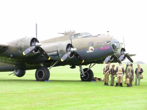 | Συμμαχικό βομβαρδιστικό Β-17 με το πλήρωμά του, λίγο πριν την απογείωση από την Αγγλία, για μία ακόμη αποστολή πάνω από την Γερμανία. |