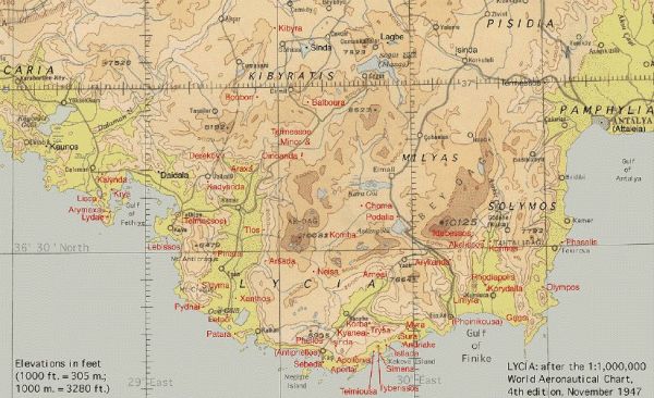 Ήταν κτισμένη μεταξύ των εκβολών του ποταμού Ξάνθου, μετά την μεγάλη κοιλάδα που αυτός δημιουργεί (στην οποία οφείλεται η ευημερία της Λυκίας) και του όρμου της Αντιφέλλου – έναντι της Μεγίστης (νυν Καστελλόριζου).