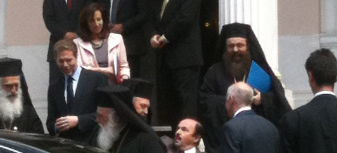 Ένα «ιερό μνημόνιο» παρέλαβαν από τον Αρχιεπίσκοπο Ιερώνυμο και την Ιερά Σύνοδο, ο Πρωθυπουργός και οι υπουργοί Παιδείας Άννα Διαμαντοπούλου, Πολιτισμού, Παύλος Γερουλάνος και ο υφυπουργός Υγείας Χρήστος Αηδόνης στη συνάντηση που είχαν νωρίτερα στο μέγαρο Μαξίμου.