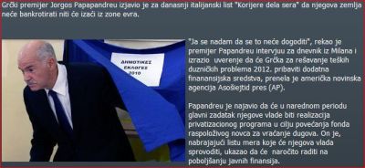 | Το σερβικό πρακτορείο Tanjug αναφέρεται στη συνέντευξη του Έλληνα Πρωθυπουργού στην ιταλική εφημερίδα Corriere della Sera |