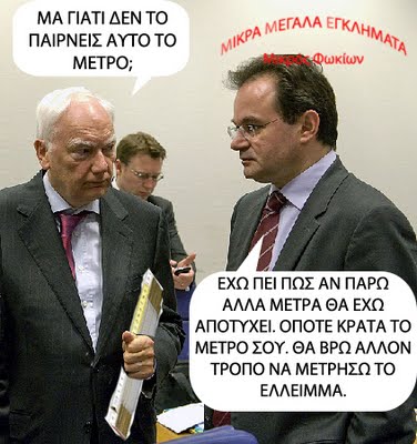 Όπως είναι γνωστό η κυβέρνηση έχει δεσμευτεί να μην πάρει νέα μέτρα. Εννοούσε βέβαια ότι δεν θα έπαιρνε από αυτά τα μέτρα που μετράμε. Τώρα αν άλλα καταλάβαμε εμείς είναι δικό μας πρόβλημα.