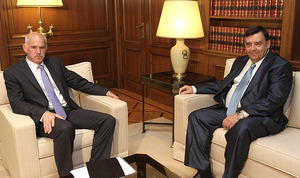 Νωρίτερα ο κ. Παπανδρέου συναντήθηκε με τον Αντώνη Σαμαρά στο πλαίσιο των επαφών που έχει σήμερα ο πρωθυπουργός με τους πολιτικούς αρχηγούς εκτός της γ.γ. του ΚΚΕ, Αλέκα Παπαρήγα για συναίνεση της αντιπολίτευσης στα νέα οικονομικά μέτρα. Αυτή την ώρα συναντάται με τον πρόεδρο της Κ.Ο. του ΣΥΡΙΖΑ, Αλέξη Τσίπρα.