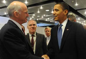 Μπορεί η «πολιτική μοίρα» του Μπαράκ Ομπάμα να εξαρτάται από τον Γιώργο Παπανδρέου; Σύμφωνα με το Brookings Institution, μπορεί. Το γνωστό αμερικανικό think tank, που εκφράζει τις απόψεις του Δημοκρατικού Κόμματος και πολλά στελέχη του έχουν πλαισιώσει την κυβέρνηση Ομπάμα, δημοσιεύει λοιπόν στην ιστοσελίδα του άρθρο του Γουίλιαμ Αντόλις, διευθύνοντα συμβούλου του Brookings Institution, με τίτλο «Ο συνεταίρος του Ομπάμα στην Αθήνα» (στα αγγλικά, «Obama’s partner in Athens»).