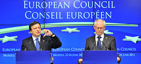 Από την πλευρά του, ο πρόεδρος της Επιτροπής Ζοζέ Μπαρόζο, αφού υπογράμμισε για μια ακόμη φορά την ανάγκη εθνικής ενότητας στην Ελλάδα, εξέφρασε την απόλυτη ικανοποίησή του για το γεγονός ότι η σύνοδος κορυφής απεδέχθη την πρότασή του για την τόνωση της ανάπτυξης στην Ελλάδα μέσω του επαναπρογραμματισμού των πόρων των κοινοτικών ταμείων τους οποίους δικαιούται η χώρα.