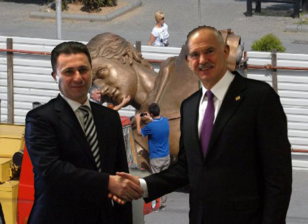 Ζήτημα αξιοπιστίας και πραγματικής προσήλωσης στην προσπάθεια επίτευξης λύσης στο θέμα του ονόματος εγείρει η απόφαση των Σκοπίων να τοποθετήσουν αγάλματα ιστορικών προσωπικοτήτων της Ελλάδας σε διάφορα σημεία της χώρας έθεσε, σύμφωνα με πληροφορίες, ο πρωθυπουργός Γιώργος Παπανδρέου στον Σκοπιανό ομόλογο του.