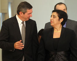 Αναφορικά με τις απειλές Νταβούτογλου ενόψει της έναρξης των ερευνών, στις 21 Σεπτεμβρίου, για την αξιοποίηση των κοιτασμάτων φυσικού αερίου ανοιχτά της Κύπρου, η Ερατώ Κοζάκου-Μαρκουλλή δηλώνει την αποφασιστικότητα της Κυπριακής Δημοκρατίας να προχωρήσει. «Βεβαίως, οι προγραμματισμοί μας θα συνεχίσουν και όλες οι ενέργειες και οι σχεδιασμοί που είναι σύμφωνοι με τις αρχές του Διεθνούς Δικαίου. Πρόκειται για άσκηση κυριαρχικών δικαιωμάτων», υπογραμμίζει.