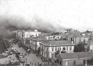Σάββατο 18 Αυγούστου 1917 περίπου στις 3 το μεσημέρι,ξεκίνησε -όπως προέκυψε από την ανάκριση που διεξήγαγαν οι δικαστικές αρχές της Θεσσαλονίκης,-η μεγαλη πυρκαγιά της πόλης που ειχε σαν αποτελεσμα την ολοσχερή καταστροφή μεγάλου μέρους της. Η Πυρκαγιά ξεκίνησε απο σπίθα της φωτιάς μιας κουζίνας, που έπεσε σε παρακείμενη αποθήκη με άχυρο σε ένα φτωχικό σπίτι προσφύγων στην διεύθυνση Ολυμπιάδος 3, στην συνοικία Μεβλανέ μεταξύ του κέντρου και της Άνω Πόλης .Η έλλειψη νερού και η αδιαφορία των γειτόνων, δεν έκανε δυνατή την κατάσβεση της αρχικής πυρκαγιάς, και σε σύντομο διάστημα και χάρη στον έντονο άνεμο η πυρκαγιά μεταδόθηκε στα γειτονικά σπίτια και άρχισε να εξαπλώνεται σε όλη την Θεσσαλονίκη. Ο άνεμος δυνάμωσε και η πυρκαγιά ακόμη πιο γρήγορα κατέβηκε στο κέντρο της πόλης. Τα ξημερώματα της επόμενη μέρας (6/19 Αυγούστου) ο άνεμος άλλαξε κατεύθυνση και τα δύο μέτωπα της πυρκαγιάς κατέστρεψαν όλο το εμπορικό κέντρο. Στις 12:00 πέρασε γύρω από τον περίβολο του ναού της Αγίας Σοφίας χωρίς να τον πειράξει, και συνέχισε ανατολικά μέχρι την οδό Εθνικής Αμύνης (πρώην Χαμιντιέ) όπου σταμάτησε. Το βράδυ της 6/19 Αυγούστου σταμάτησε η εξάπλωσή της.