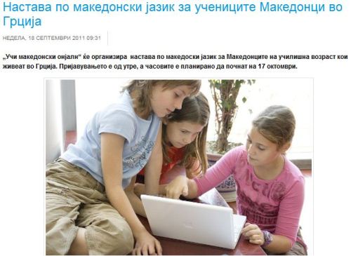 «Μάθετε Μακεντόνσκι on–line» είναι το σύνθημα της προώθησης των Σκοπίων για τους Σλάβους που κατοικούν στην Ελλάδα και πηγαίνουν σε Δημοτικό Σχολείο.
