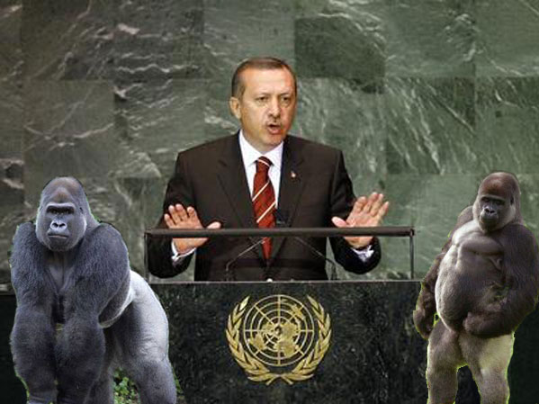 Τη στιγμή εκείνη στο βήμα βρισκόταν ο Μαχμούντ Αμπάς και ο Τ. Ερντογάν δε μπορούσε να περιμένει στην ουρά για να ολοκληρωθούν οι έλεγχοι των προσωπικών αντικειμένων άλλων διπλωματών.