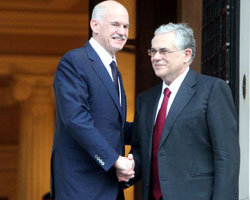 Ο κ. Παπανδρέου καλωσορίζοντας τον κ. Παπαδήμο δήλωσε ότι «αναλαμβάνετε σε κρίσιμες και δύσκολες στιγμές και θα είμαστε ενωμένοι στην προσπάθεια να πετύχει η κυβέρνηση και να ελαφρύνει τον ελληνικό λαό από το βάρος που έχει, να κάνουμε τις μεγάλες αλλαγές που χρειάζεται ο τόπος με την καλύτερη συνεργασία». Υποσχέθηκε δε, «την καλύτερη δυνατή στήριξη» από την πλευρά του στο έργο της νέας κυβέρνησης.