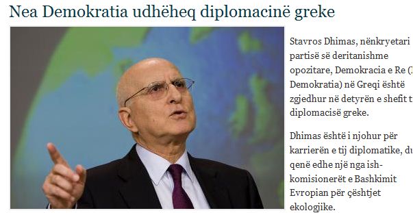 Η δυνατότητα αυτή δίνεται από τους περισσότερους αναλυτές και πολιτικούς κύκλους του κόμματος της Νέας Δημοκρατίας της Ελλάδας, ένα κόμμα στο οποίο ανήκει ο επικεφαλής του ελληνικού ΥΠΕΞ, ο διπλωμάτης καριέρας, Σταύρος Δήμας.