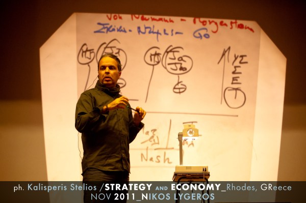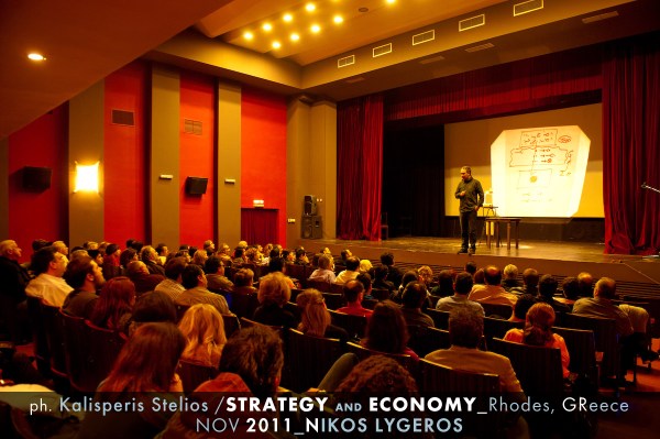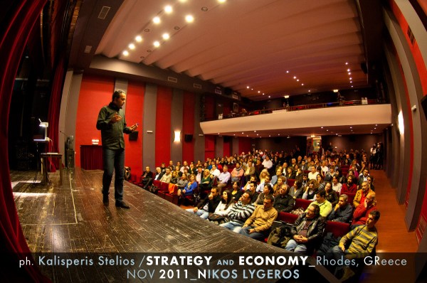 Στην εισήγησή του ο κύριος Λυγερός υποστήριξε μπροστά σε ένα θερμό ακροατήριο 300 και πλέον Ρόδιων πολιτών ότι η στρατηγική είναι οικονομική και σπάνια η οικονομία είναι στρατηγική, αφού η τέχνη της μίας φοβίζει την επιστήμη της άλλης, κι όμως η θεωρία παιγνίων καθώς το απέδειξε ο John Nash είναι ικανή να συνδυάσει και τις δύο.