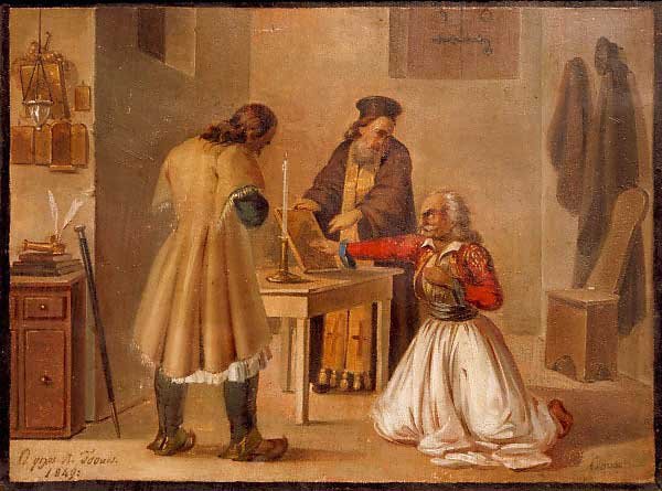 «Ορκίζομαι ενώπιον του αληθινού Θεού, ότι θέλω είμαι επί ζωής μου πιστός εις την Εταιρείαν κατά πάντα. Να φανερώσω το παραμικρόν από τα σημεία και τους λόγους της, μήτε να σταθώ κατ΄ουδένα λόγον ή αφορμή του να καταλάβωσι άλλοι ποτέ, ότι γνωρίζω τι περί τούτων, μήτε εις συγγενείς μου, μήτε εις πνευματικόν ή φίλον μου.