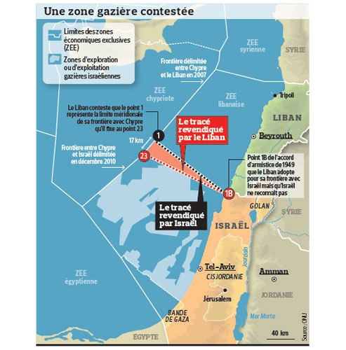 Μια διαμάχη ξέσπασε μεταξύ του Λιβάνου και του Ισραήλ, μετά την ανακάλυψη κοιτασμάτων πετρελαίου και αερίου στη θαλάσσια περιοχή των συνόρων. Ο χάρτης που προτείνονται από το Ισραήλ για την οριοθέτηση της ΑΟΖ του δεν γίνεται αποδεκτό από τον Λίβανο.