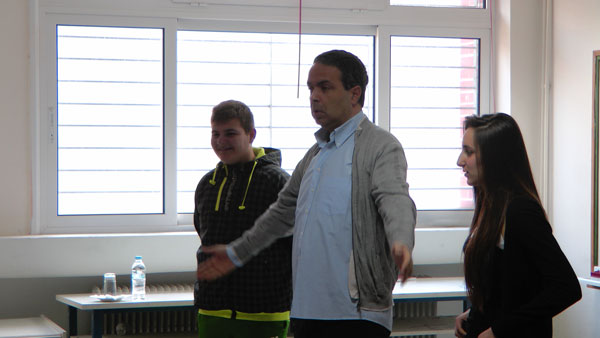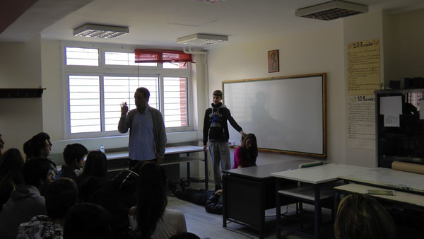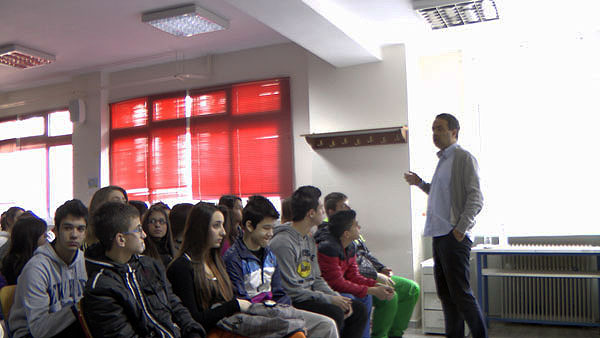 Φωτογραφικό υλικό από την επίσκεψη του κύριου Λυγερού στο Γυμνάσιο Πευκών στη Θεσσαλoνίκη.