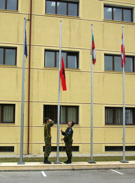 Την 05 Μαρτίου 2012, πραγματοποιήθηκε στο NDC – GR τελετή έπαρσης της σημαίας της Αλβανίας, με την ευκαιρία της τοποθέτησης στο Στρατηγείο του πρώτου Αλβανού Αξιωματικού επιτελούς, Αντισυνταγματάρχη SALIASI Kasem.