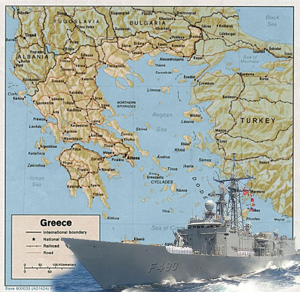 Μια τουρκική φρεγάτα κλάσης O.H.Perry, η F490 Gaziantep, (φωτό α’ σελίδας), πρώην USS Clifton Sprague, εισέβαλε πριν λίγες ώρες στα ελληνικά χωρικά ύδατα, προερχόμενη από το ναύσταθμο του Ακσάζ, στην Μαρμαρίδα έφτασε μέχρι τις βόρειες ακτές της Αττικής και ακολούθησε εν συνεχεία βορειοανατολική ανατολική πορεία. Είναι η δεύτερη φορά που η F490 Gaziantep κάνει το ταξιδάκι αυτό.
