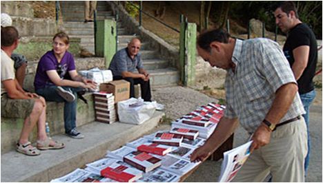 «πώληση του σλαβο-ελληνικού λεξικού στο πεζοδρόμιο, το οποίο έχει τίτλο «μακεδονο-ελληνικό λεξικό»
