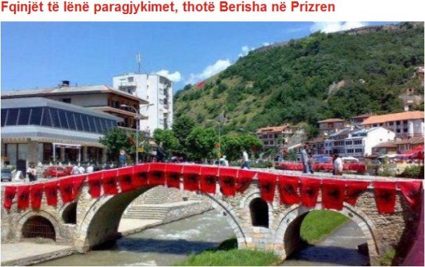 «Από το Πρίζρεν, παροτρύνουμε τους γείτονές μας να απαλλαγούν από τις προκαταλήψεις εναντίον των Αλβανών και ας προσπαθήσουμε να δημιουργήσουμε ένα κοινό μέλλον», δήλωσε ο Μπερίσα.