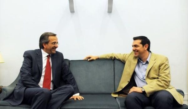 Με τον επικεφαλής του ΣΥΡΙΖΑ Αλέξη Τσίπρα συναντήθηκε στη Βουλή ο πρόεδρος της Νέας Δημοκρατίας Αντώνης Σαμαράς, στο πλαίσιο των συζητήσεων για τον σχηματισμό κυβέρνησης συνεργασίας. Ο κ. Τσίπρας τόνισε την ανάγκη άμεσης συγκρότησης κυβέρνησης με πυρήνα τη ΝΔ και διευκρίνισε ότι ο ΣΥΡΙΖΑ δεν θα αναλάβει τη διερευνητική εντολή αν κληθεί από τον Πρόεδρο της Δημοκρατίας. «Πρέπει να γίνει κυβέρνηση εθνικής σωτηρίας με όσο το δυνατόν περισσότερα κόμματα», τόνισε ο κ. Σαμαράς, ο οποίος θα δει στις 6 το απόγευμα τον Βαγγέλη Βενιζέλο και στις 7 τον Πάνο Καμμένο.
