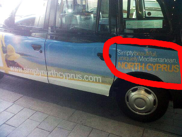 Το συγκριμένο αυτοκίνητο το οποίο είναι «ντυμένο» με τα χρώματα εταιρείας η οποία προτείνει διακοπές στα κατεχόμενα, βρίσκεται στο Westfielf εκεί δηλαδή που θα διεξαχθούν οι Ολυμπιακοί αγώνες του Λονδίνου τον ερχόμενο Αύγουστο.