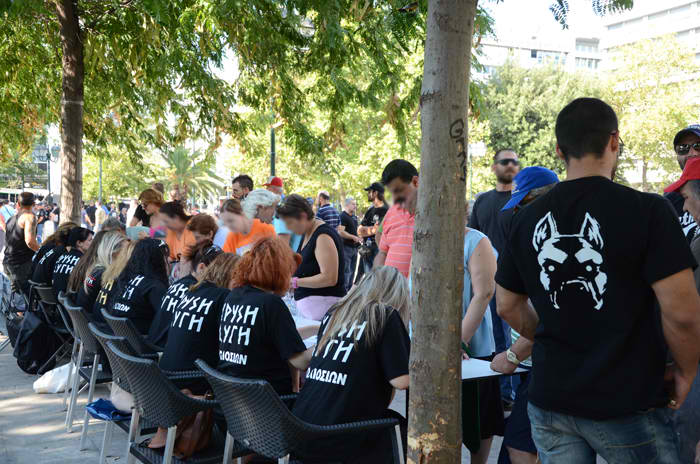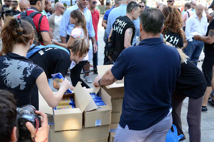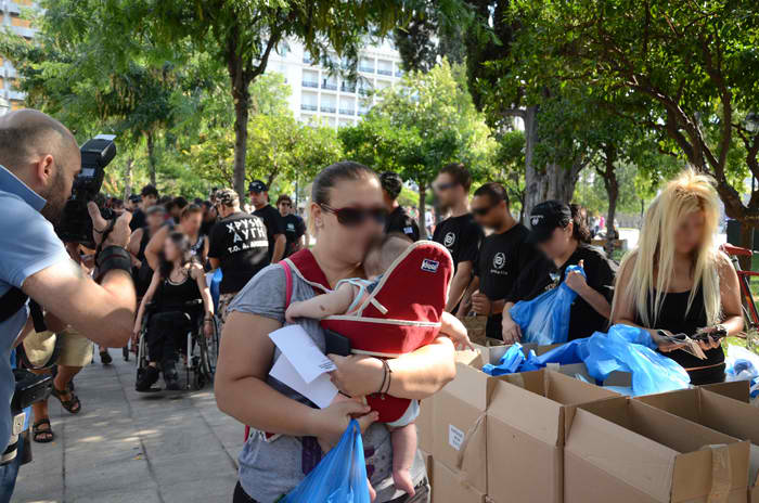 Χιλιάδες Έλληνες συμπολίτες μας προμηθεύτηκαν δωρεάν από την Χρυσή Αυγή, παρά τις αντιδράσεις του Καμίνη και την προσπάθεια παρακώλυσης, τρόφιμα (ζυμαρικά, λάδι, πατάτες, γάλατα, παιδικές τροφές) μέχρι αυτήν την στιγμή.