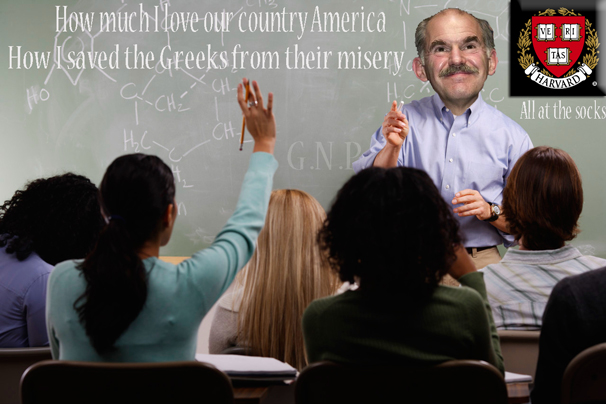 Το σημερινό μας σχόλιο δεν αφορά ούτε το τι ακριβώς θα διδάσκει εκεί ο Παπανδρέου, ούτε το ότι στο σουαρέ ντε γκαλά φέρονταν να έχουν πρόσβαση μόνο οι καθηγητές του πανεπιστημίου και οι απόφοιτοι, οι οποίοι μάλιστα θα έπρεπε να πληρώσουν 15 δολάρια έκαστος για να μπει στην αίθουσα της εκδήλωσης…