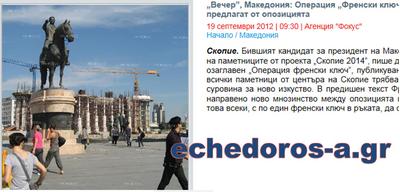 Ο πρώην υποψήφιος για την προεδρία των Σκοπίων, ο Λιούμπομιρ Φριτσκόβσκι, κάλεσε να βγουν τα μνημεία από το σχέδιο «Σκόπια 2014», γράφει η σλαβική εφημερίδα των Σκοπίων, Βέτσερ, σύμφωνα με δημοσίευμα του βουλγαρικού πρακτορείου.