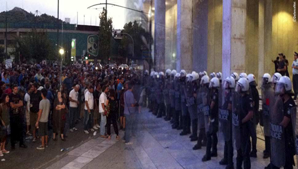 Τα ΜΑΤ με πολύ μεγάλη δυσκολία απώθησαν τους διαδηλωτές που απαιτούσαν να αφεθούν ελεύθεροι οι συνάδελφοί τους.