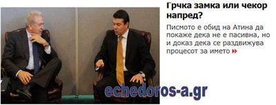 «Η κυβέρνηση θα πρέπει να ανταποκριθεί θετικά και να δώσει τις προτάσεις της σχετικά με τη Συμφωνία Κατανόησης που έστειλε ο Έλληνας υπουργός Εξωτερικών Δημήτρης Αβραμόπουλος στον ομόλογό του Σλάβο Νίκολα Πόποσκι».