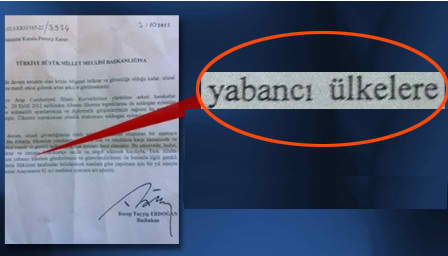 Χαρακτηριστική είναι η φωτογραφία που ανήρτησε η εφημερίδα Hürriyet, κάνοντας το απαραίτητο ζουμ στην επίμαχη φράση: