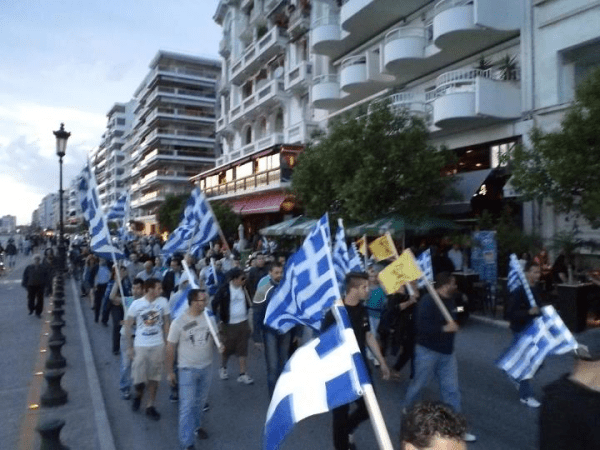 Στη μία συμμετείχαν μέλη εθνικιστικών οργανώσεων που συγκεντρώθηκαν στην πλατεία Λευκού Πύργου, για να τιμήσουν τη μνήμη του Παύλου Μελά και στη συνέχεια έκαναν πορεία στην παραλιακή λεωφόρο Νίκης.