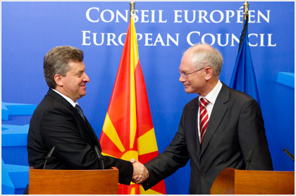 Ο πρόεδρος της ΠΓΔΜ, Γκιόργι Ιβανόφ, απηύθυνε έκκληση προς τον πρόεδρο του Ευρωπαϊκού Συμβουλίου, Χέρμαν Βαν Ρομπάι, να βοηθήσει στο να ξεμπλοκαριστεί η έναρξη των διαπραγματεύσεων της χώρας του με την Ένωση, σε συνάντηση που είχαν χθες Παρασκευή στη Βιέννη, πρωτεύουσα της Αυστρίας.