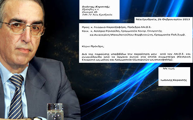 Παραιτήθηκε από το ΛΑ.Ο.Σ. και ο Κοραντής!