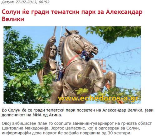 Στη Θεσσαλονίκη θα δημιουργηθεί ένα θεματικό πάρκο αφιερωμένο στον Μέγα Αλέξανδρο, αυτό αναφέρει ο ανταποκριτής της ΜΙΑ, από την Αθήνα