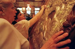 Εκατοντάδες πιστοί είχαν την ευκαιρία να την αγγίξουν, να προσκυνήσουν και να προσευχηθούν ενώπιον της εικόνας της Μητέρας του Θεού.