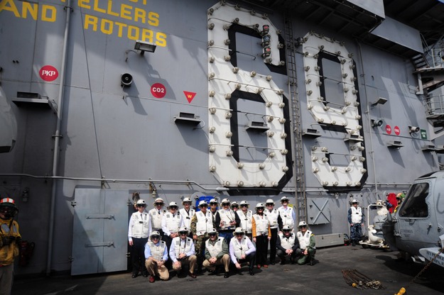 Κατά τη διάρκεια της επίσκεψης ξεναγήθηκε στους χώρους του αεροπλανοφόρου και παρακολούθησε μέρος της επιχειρησιακής εκπαίδευσης των μέσων του.