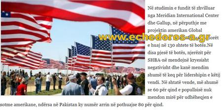 Σε πρόσφατη έρευνα που διεξήχθη από το Meridian International Center and Gallup, σύμφωνα με το πρόγραμμα Αmerikan Global Leadership, ρωτήθηκαν πολίτες σε 130 κράτη σε διάφορα μέρη του κόσμου για το πώς βλέπουν τους Αμερικάνους και την ηγεσία αυτής της χώρας.