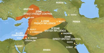 Υπενθυμίσουμε ότι το 1916, μετά από οκτώ μήνες διαπραγματεύσεων, το Ηνωμένο Βασίλειο και η Γαλλία μοιράστηκαν μυστικά τη Μέση Ανατολή (Συμφωνίες Sykes-Picot).