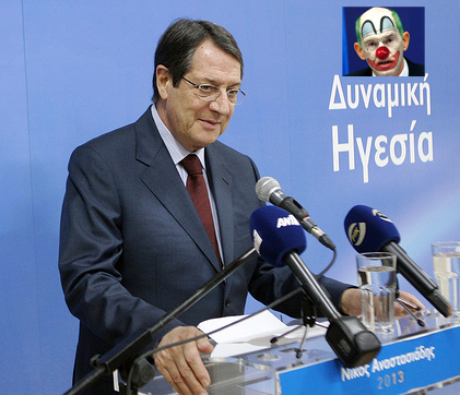 “Dead man walking” χαρακτηρίζει τον Κύπριο πρόεδρο Νίκο Αναστασιάδη ο αρθρογράφος του Guardian, Aditya Chakrabortty, παρότι έχει περάσει μόλις ένας μήνας από την ανάληψη των καθηκόντων του. “Με βάση τα όσα έγιναν γνωστά απόψε, η συμφωνία είναι σε μεγάλο βαθμό η ίδια με αυτά που απαιτούσε η τρόικα την περασμένη εβδομάδα”, σημειώνει.