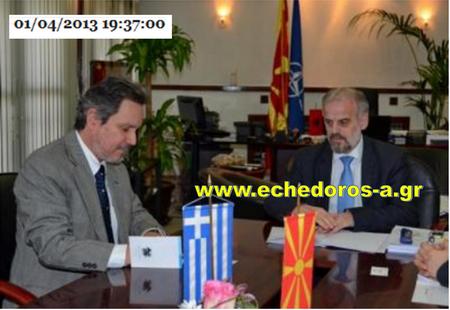 Ο υπουργός Άμυνας των Σκοπίων, Ταλάτ Τζαφέρι, συναντήθηκε σήμερα με τον επικεφαλής της ελληνικού Γραφείου Συνδέσμου στα Σκόπια, Θεοχάρη Λαλάκο.