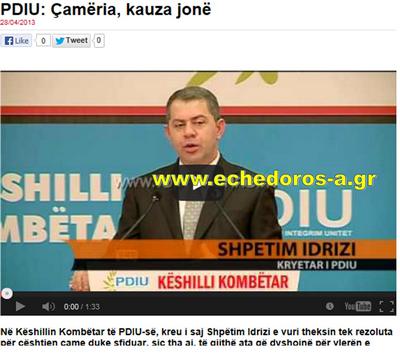 Ο Σπετίμ Ίντριζι, επικεφαλής του Εθνικού Συμβουλίου των Αλβανοτσάμηδων – PDIU, στην προεκλογική του ομιλία, έδωσε έμφαση στα ψηφίσματα των τσάμηδων για το «ζήτημα çame» που αμφισβητήθηκαν από το αλβανικό κοινοβούλιο και τόνισε ότι