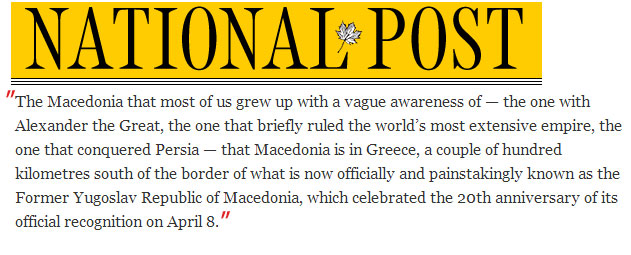 national_post_macedonia Published 14 Μαΐου, 2013 at 631 × 255 in ΚΑΝΑΔΙΚΗ NΑΤΙΟΝΑL POST: «Τα Σκόπια δεν είναι Μακεδονία – Οι απόγονοι του Μεγάλου Αλεξάνδρου βρίσκονται στην Ελλάδα» Επόμενο →