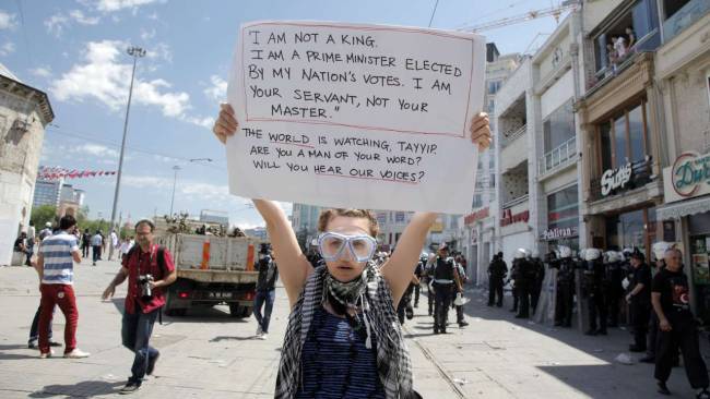 «Κάθε τέσσερα χρόνια διεξάγουμε εκλογές και η χώρα αυτή κάνει την επιλογή της. Αυτοί που έχουν πρόβλημα με την πολιτική της κυβέρνησης μπορούν να εκφράσουν τη γνώμη τους στα πλαίσια του νόμου και της δημοκρατίας. Ζητώ από τους διαδηλωτές να δώσουν αμέσως ένα τέλος στις πράξεις αυτές», τόνισε ο τούρκος Πρωθυπουργός Ρετζέπ Ταγίπ Ερντογάν σε ομιλία του που μεταδόθηκε από την τηλεόραση.